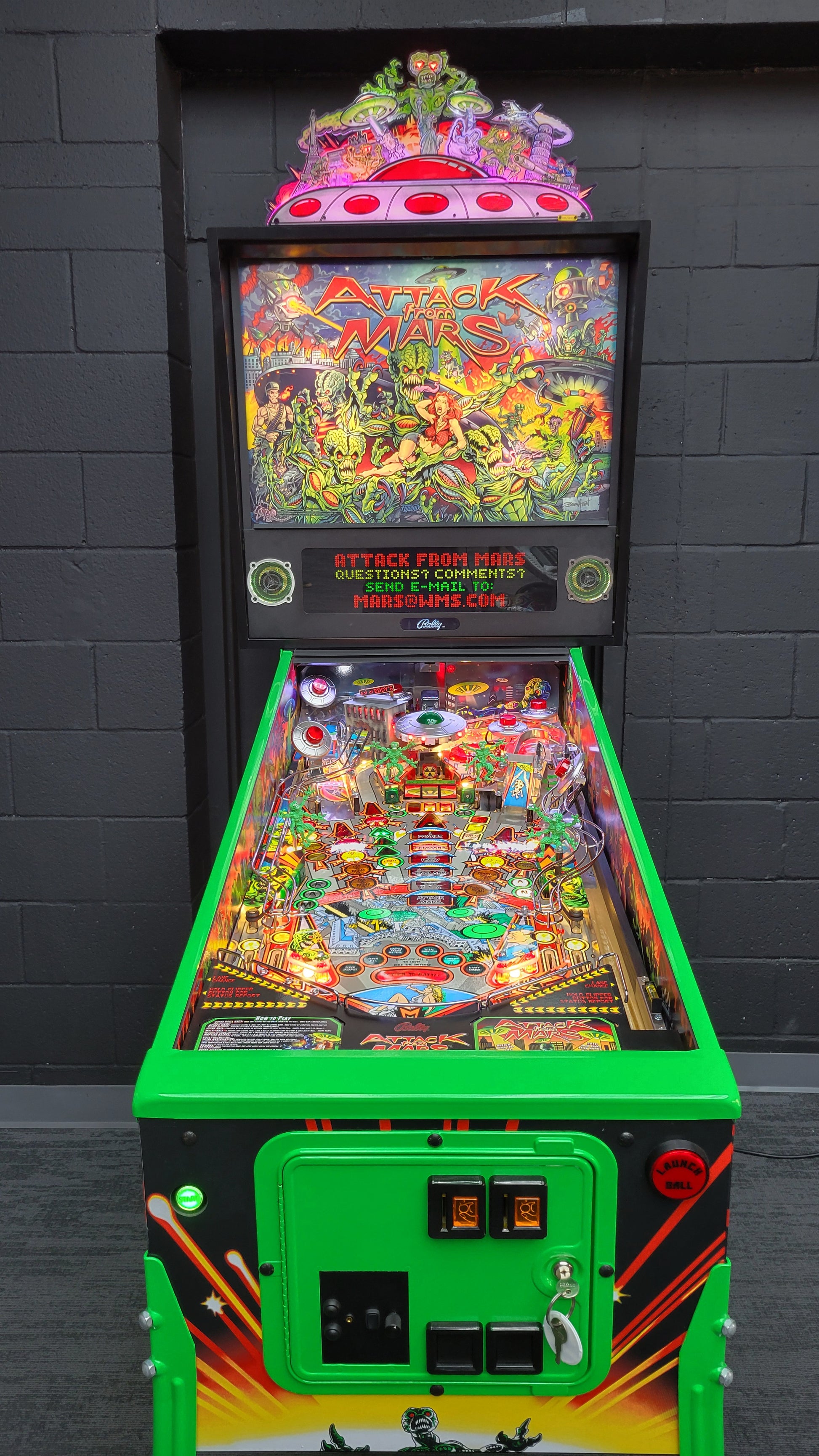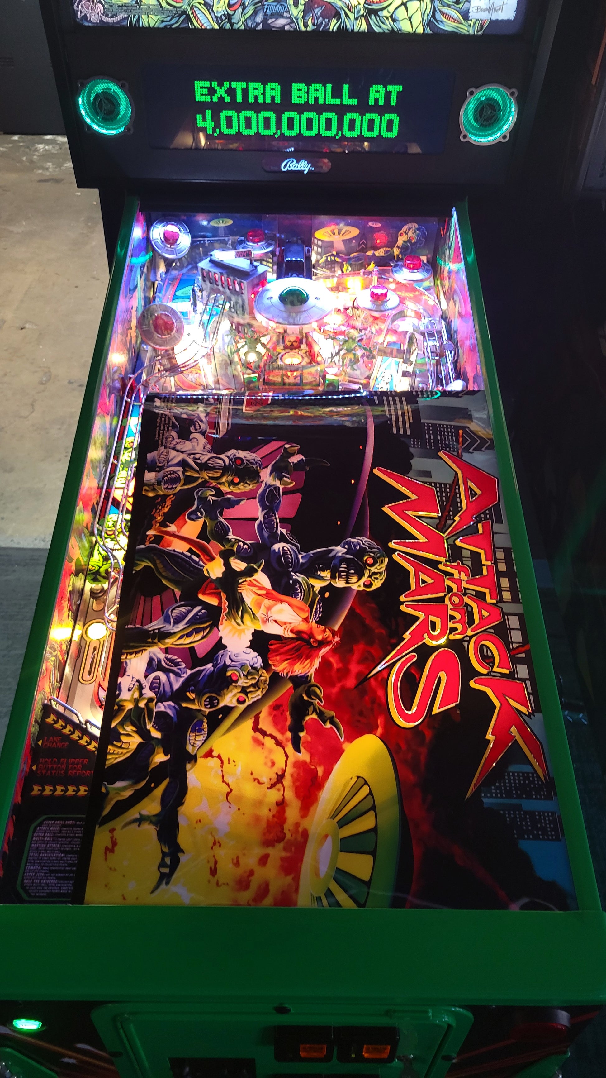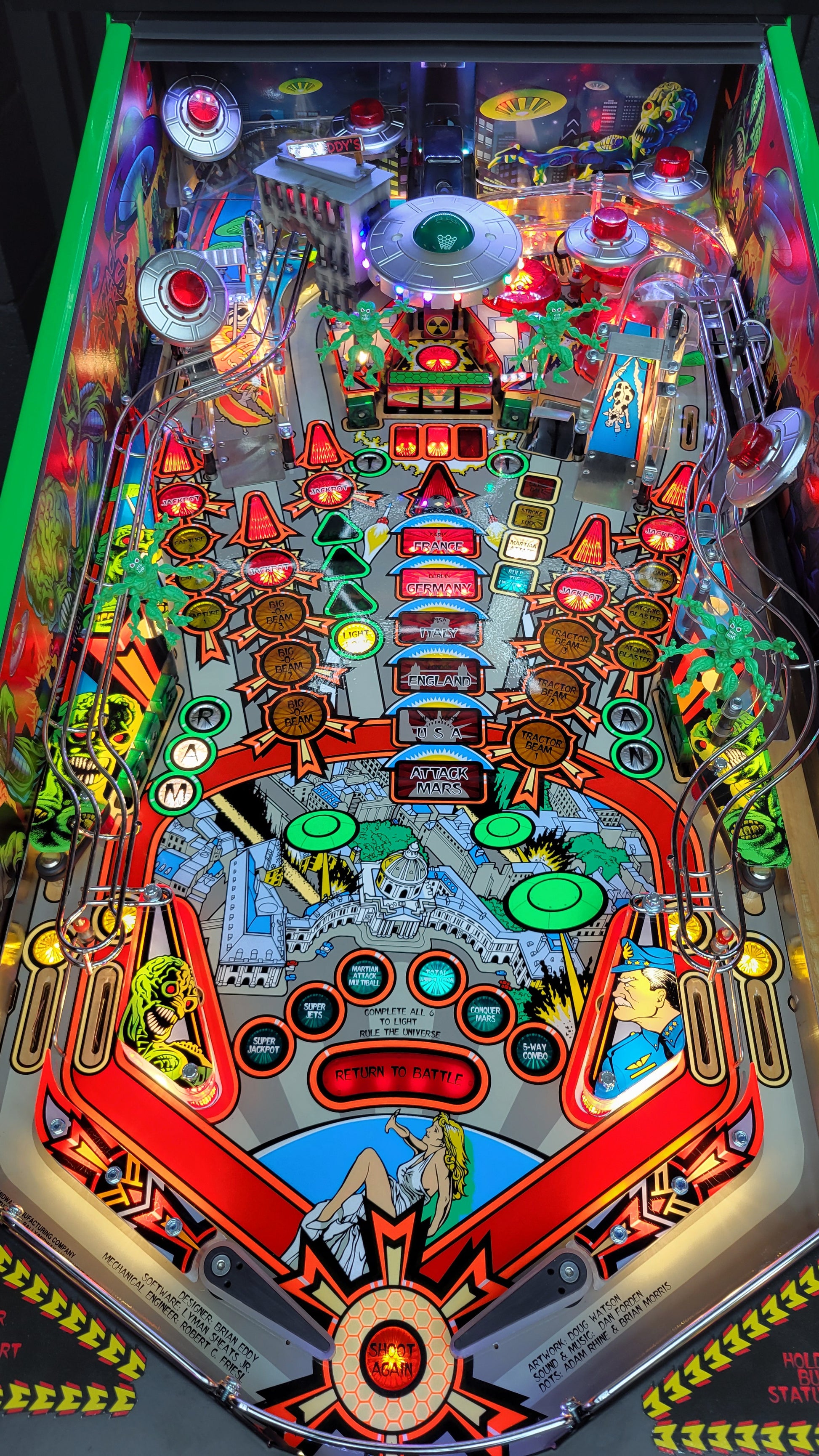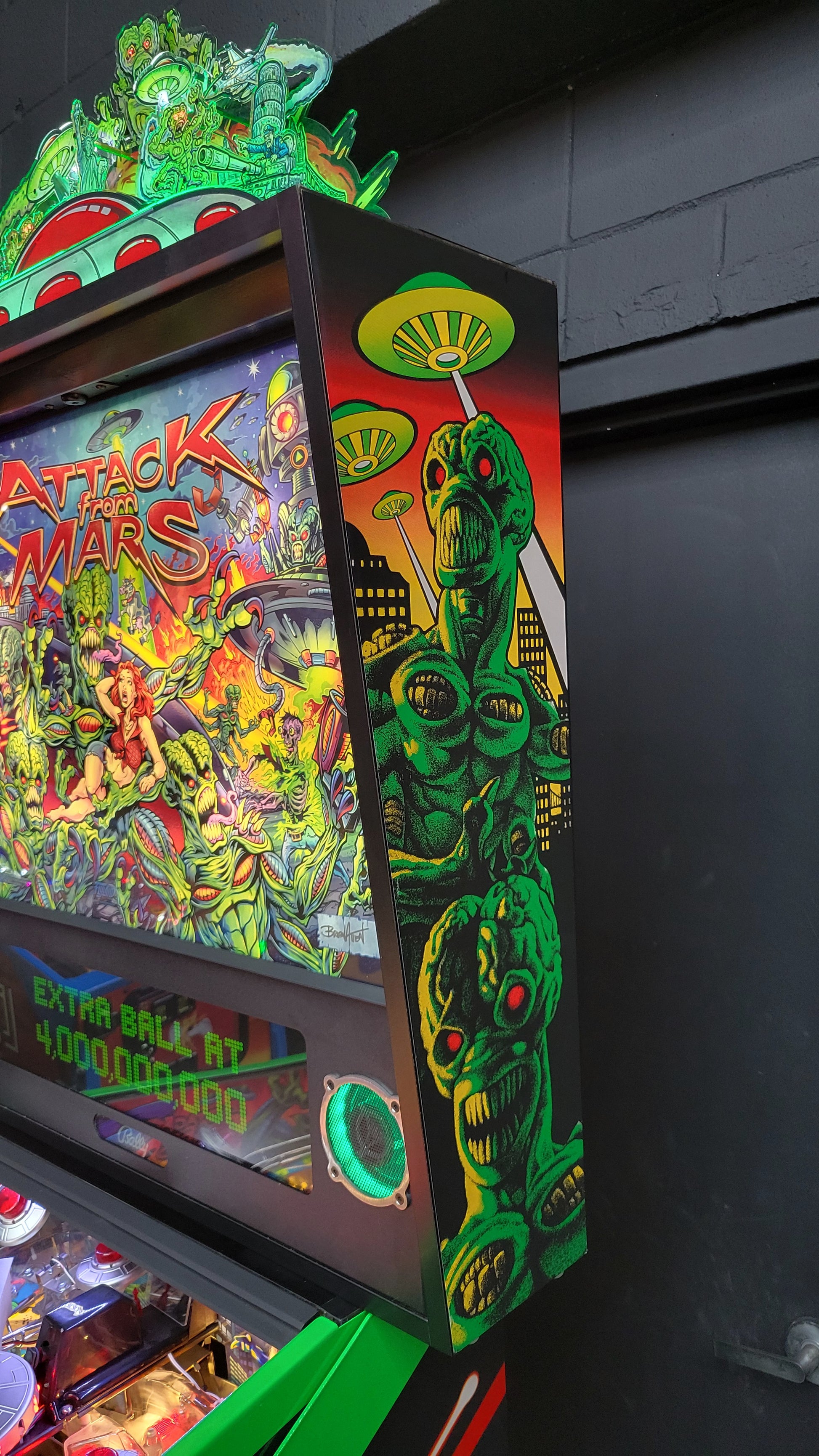 You get Flyland Design custom translite (original translite also included) green powder coated armor and coindoor, a beautiful Electric Playground topper valued at $1300 with an animated ufo and alien that move with the pinball action, a building mod, art blades and more...