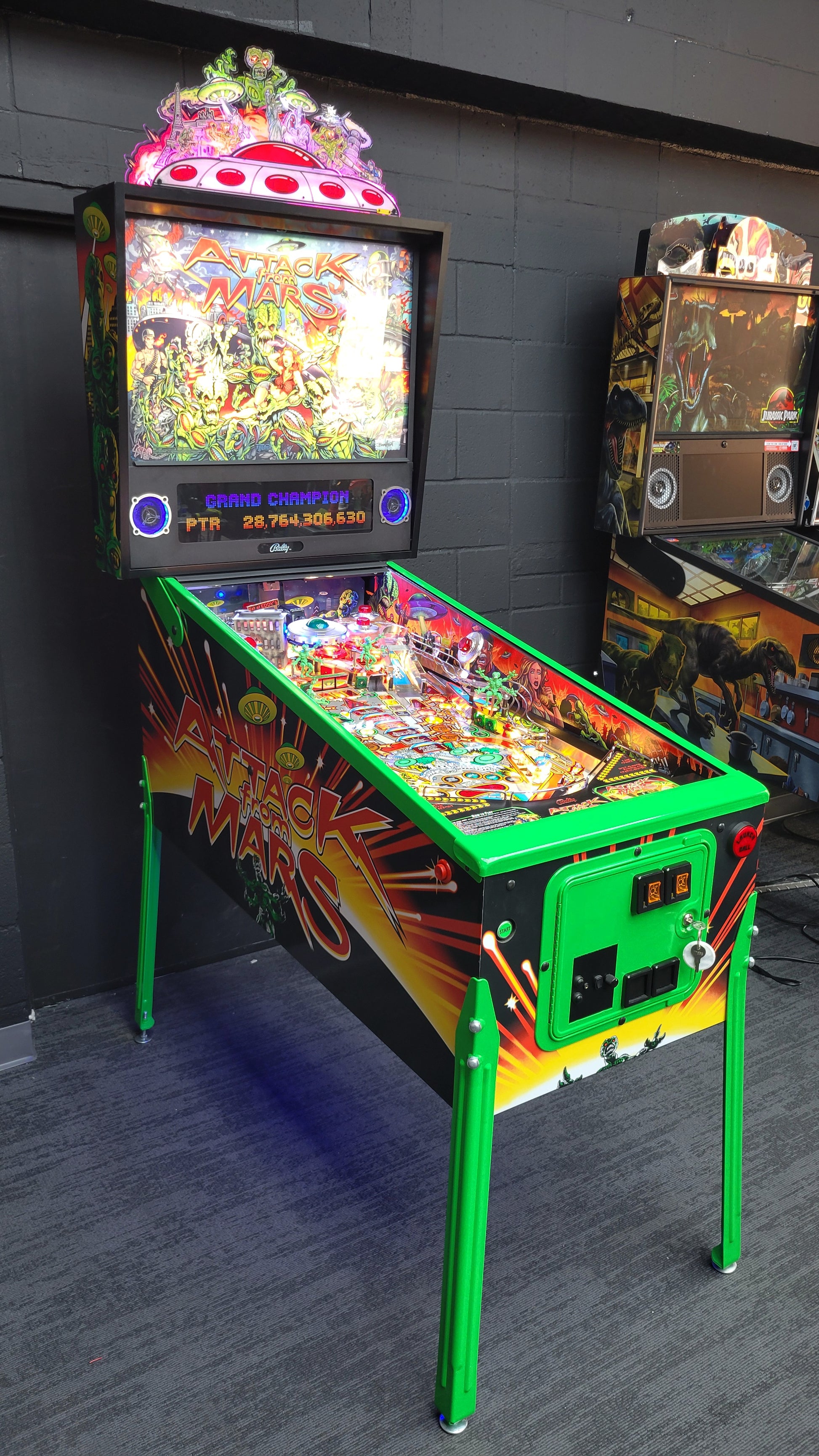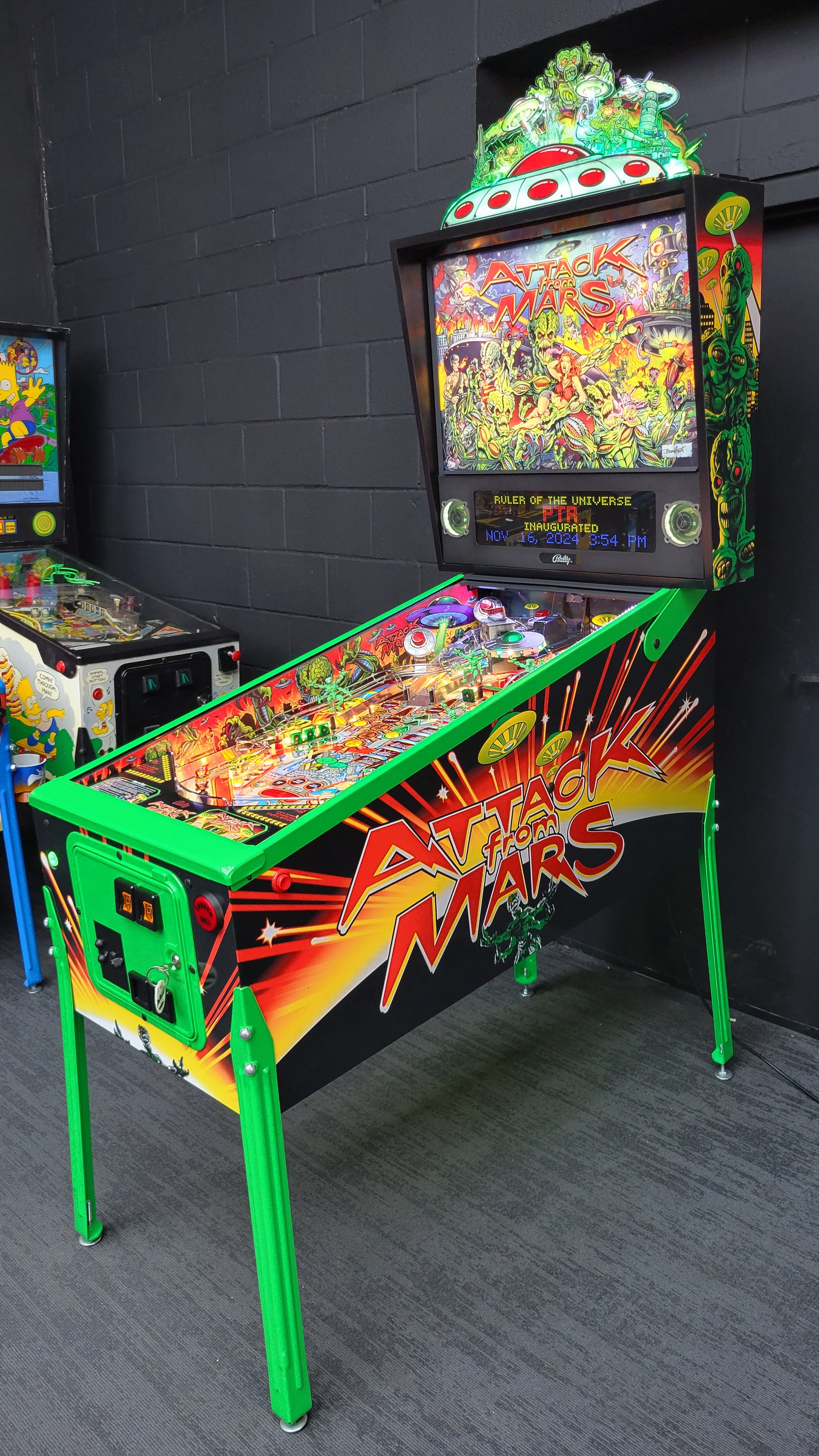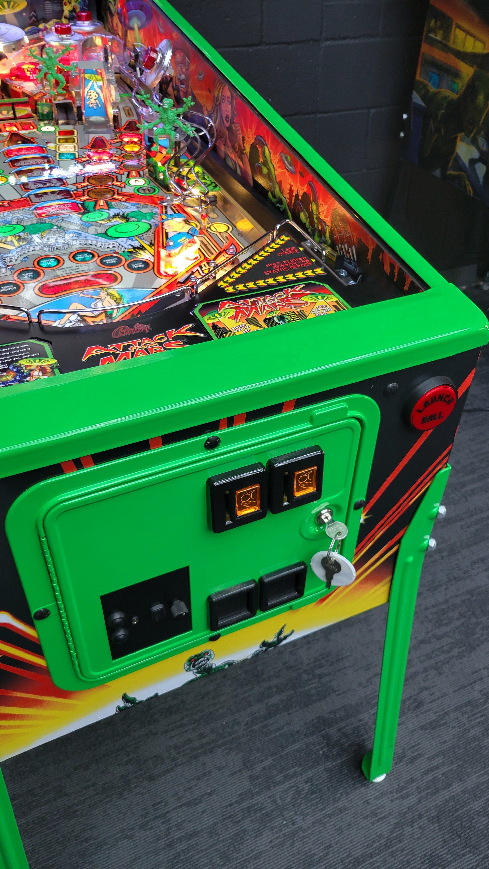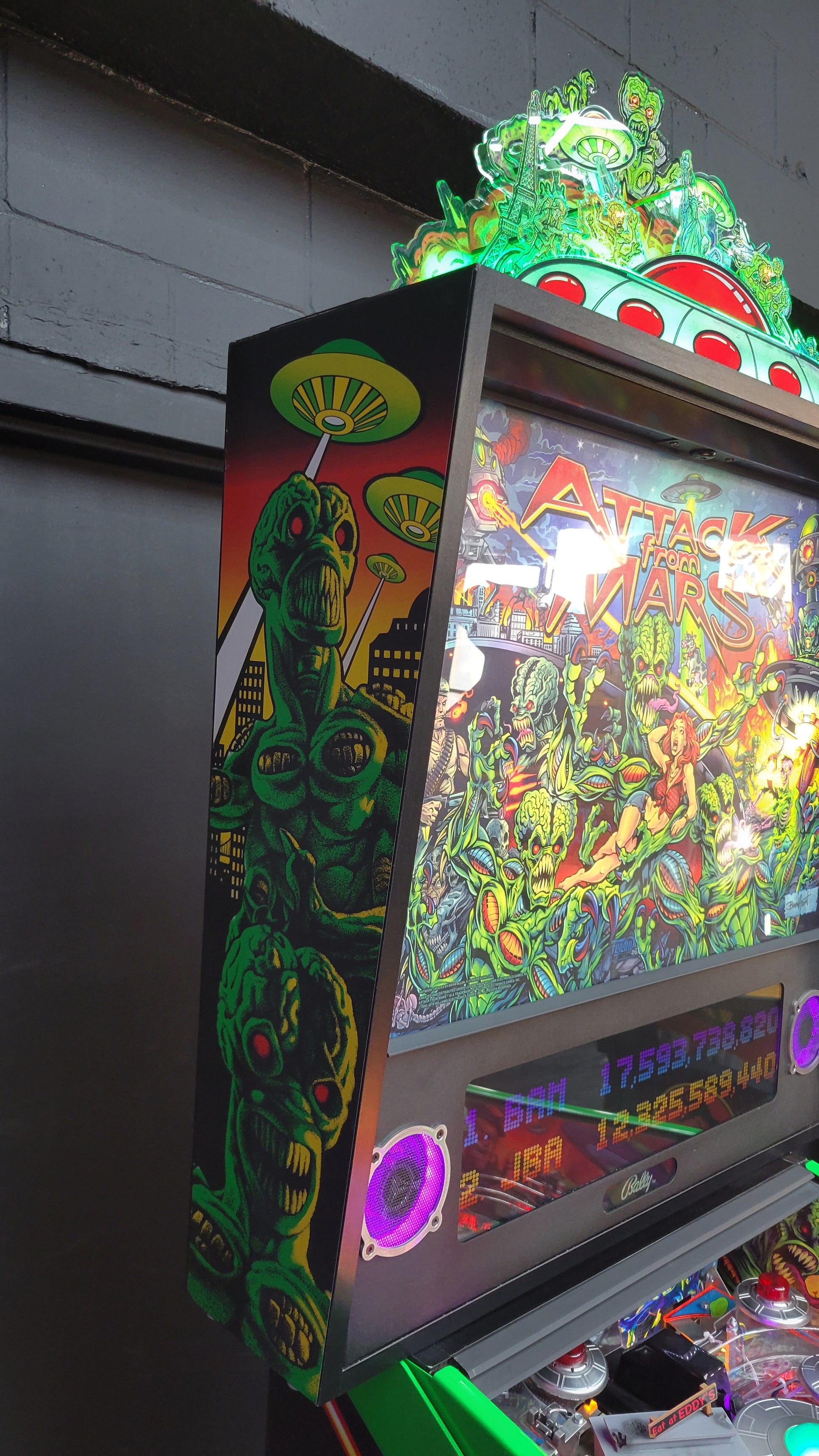 You get Flyland Design custom translite (original translite also included) green powder coated armor and coindoor, a beautiful Electric Playground topper valued at $1300 with an animated ufo and alien that move with the pinball action, a building mod, art blades and more...