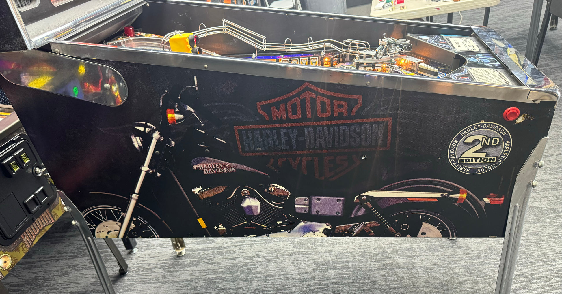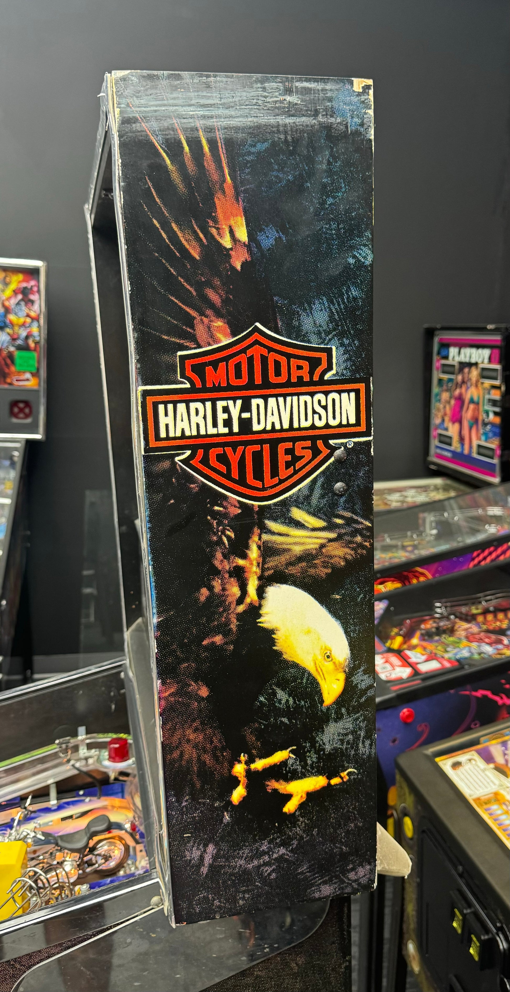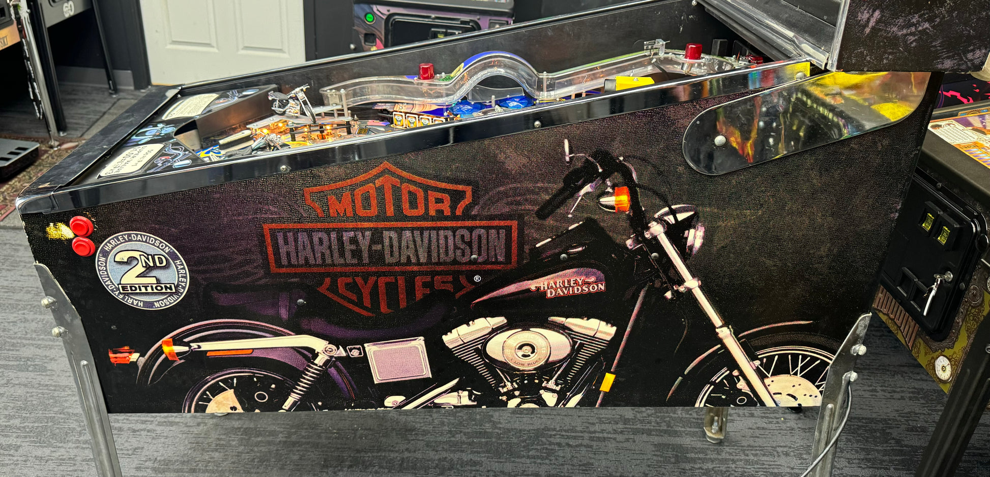 A Players condition Harley Davidson 2nd edition pinball machine by Stern Pinball. Game has been shopped out and plays nice. Shows wear for a game that spent time on location.