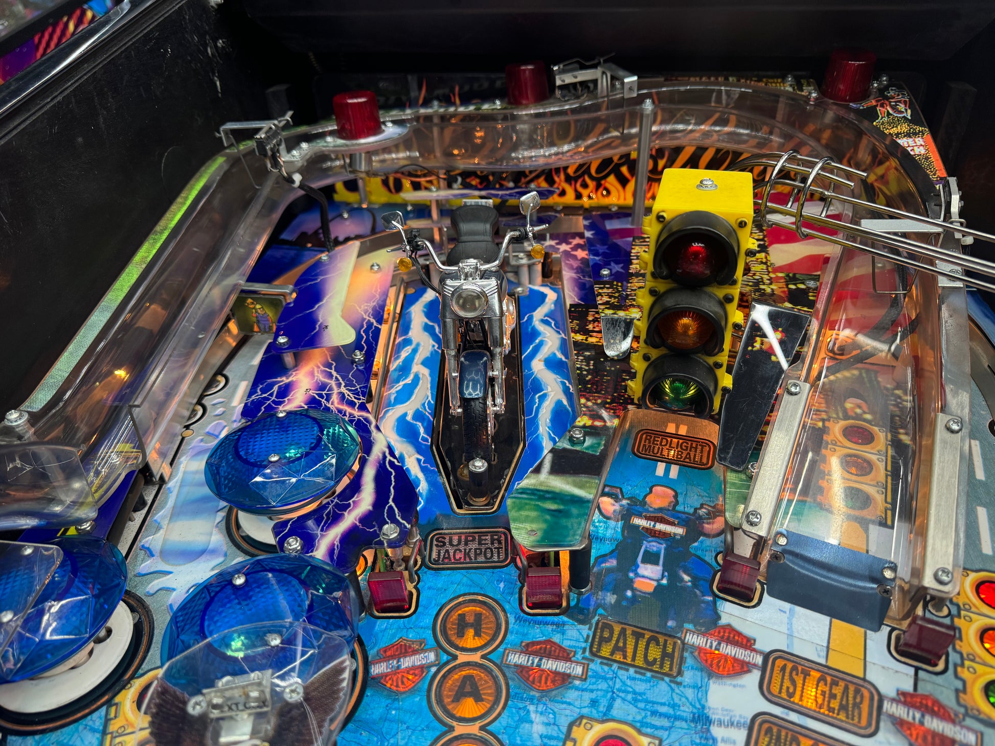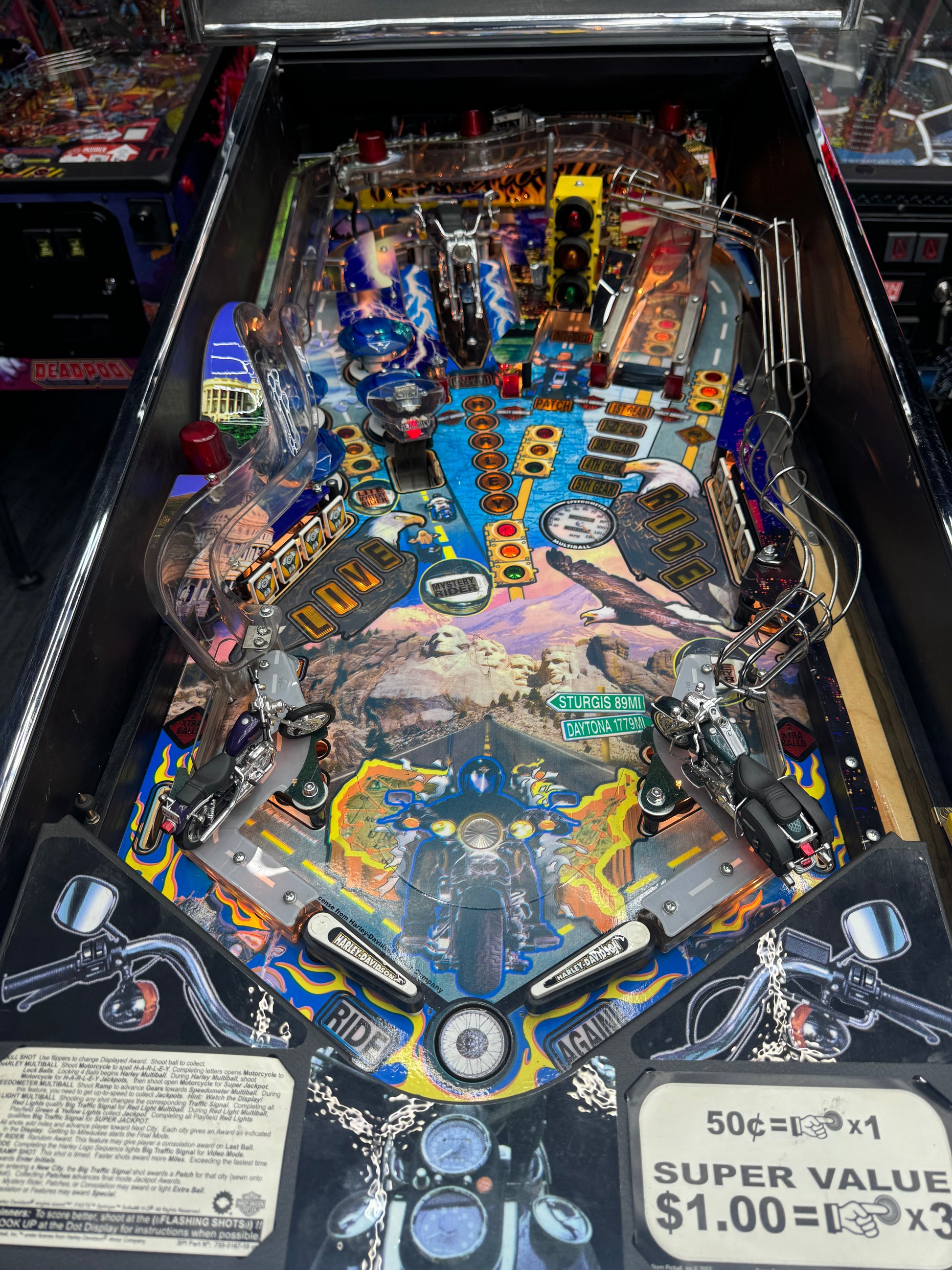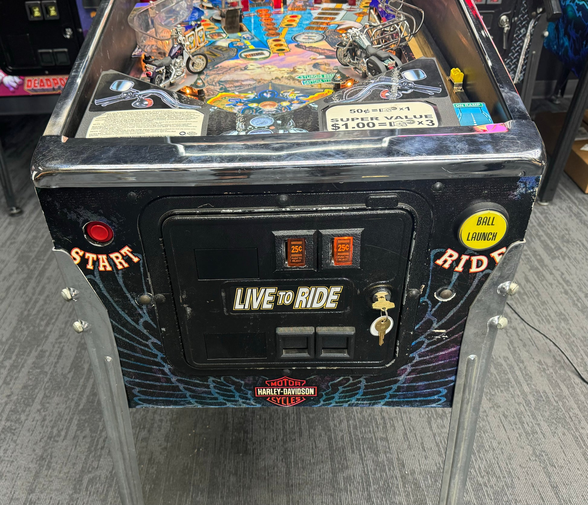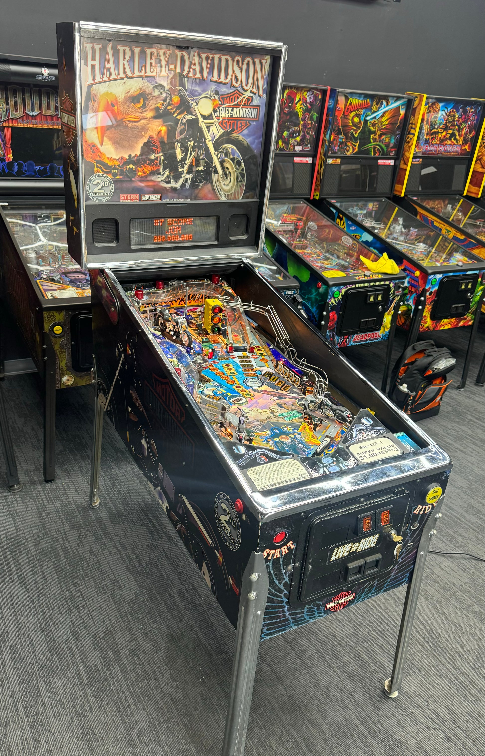 A Players condition Harley Davidson 2nd edition pinball machine by Stern Pinball. Game has been shopped out and plays nice. Shows wear for a game that spent time on location.