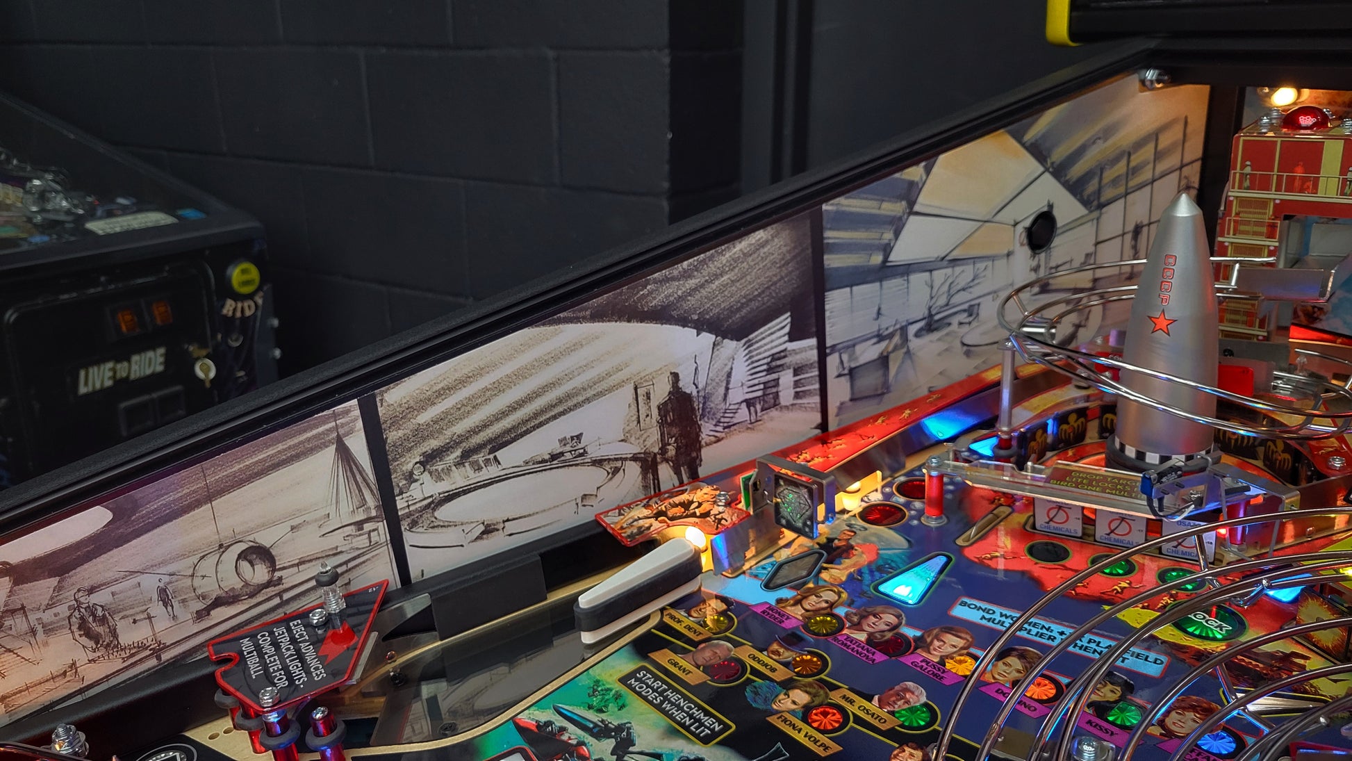 Gather gadgets from Q Branch as pinballs get ejected through the roof of a custom sculpted Aston Martin DB5. Break through the Osato Chemicals drop targets to battle SPECTRE at the Bird One rocket base.