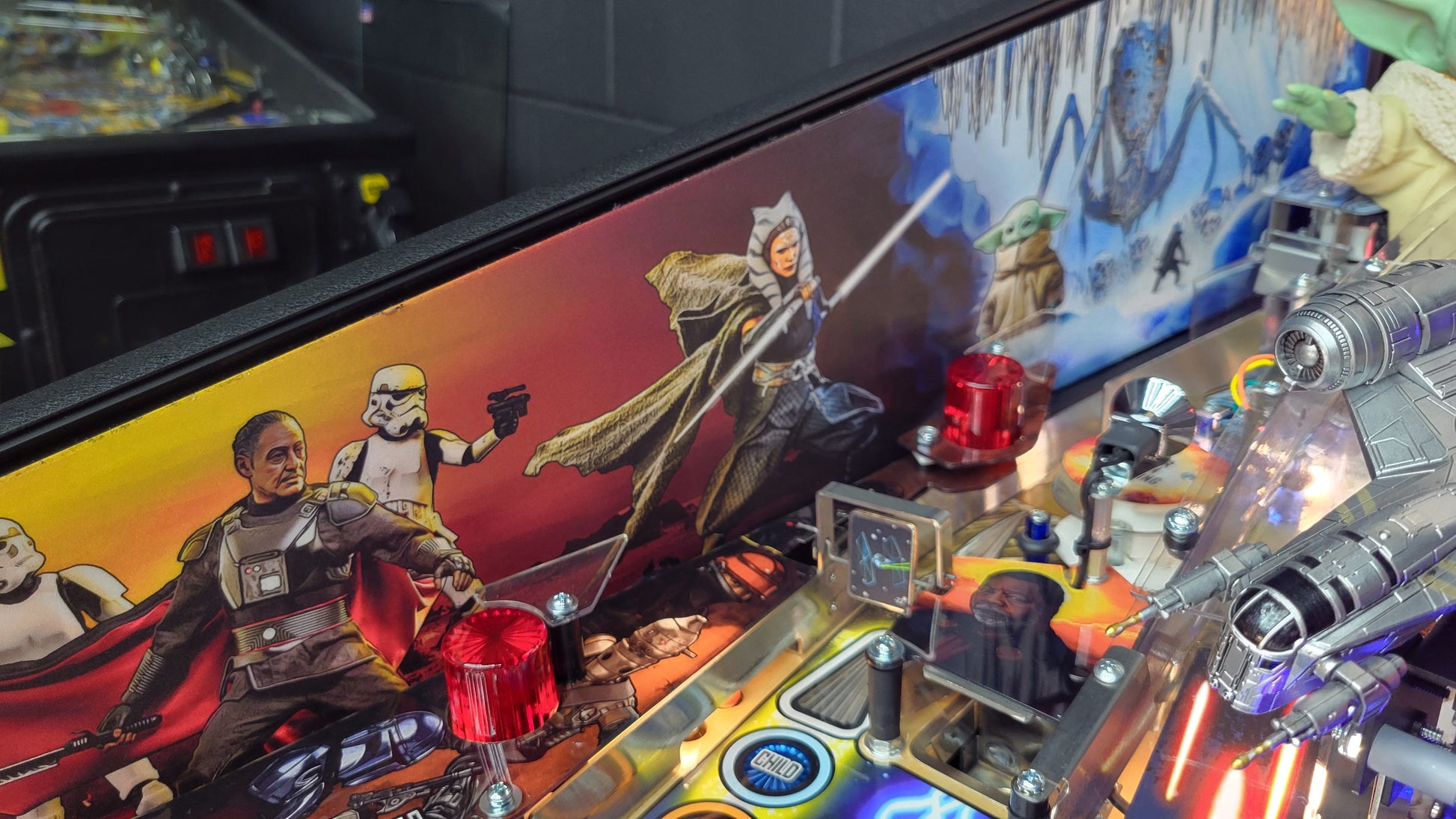 Features of The Mandalorian-inspired pinball machines include a large custom sculpture of Grogu, authentic video and audio from seasons one and two, and exclusive custom speech performed by actor Carl Weathers (Greef Karga). The game includes the iconic title theme song by Ludwig Göransson and stunning hand-drawn artwork by Randy Martinez, one of today’s most popular comic artists.
