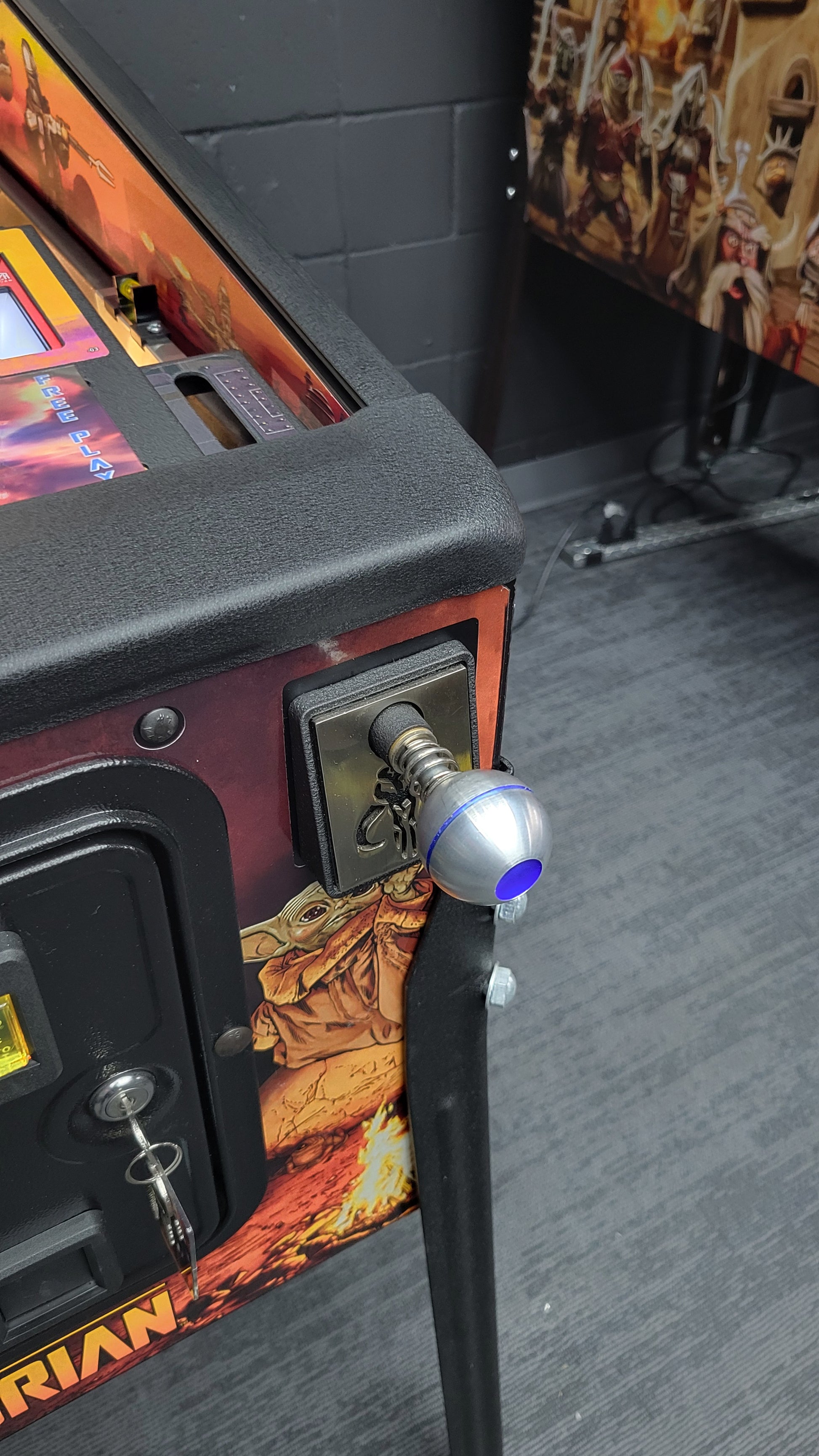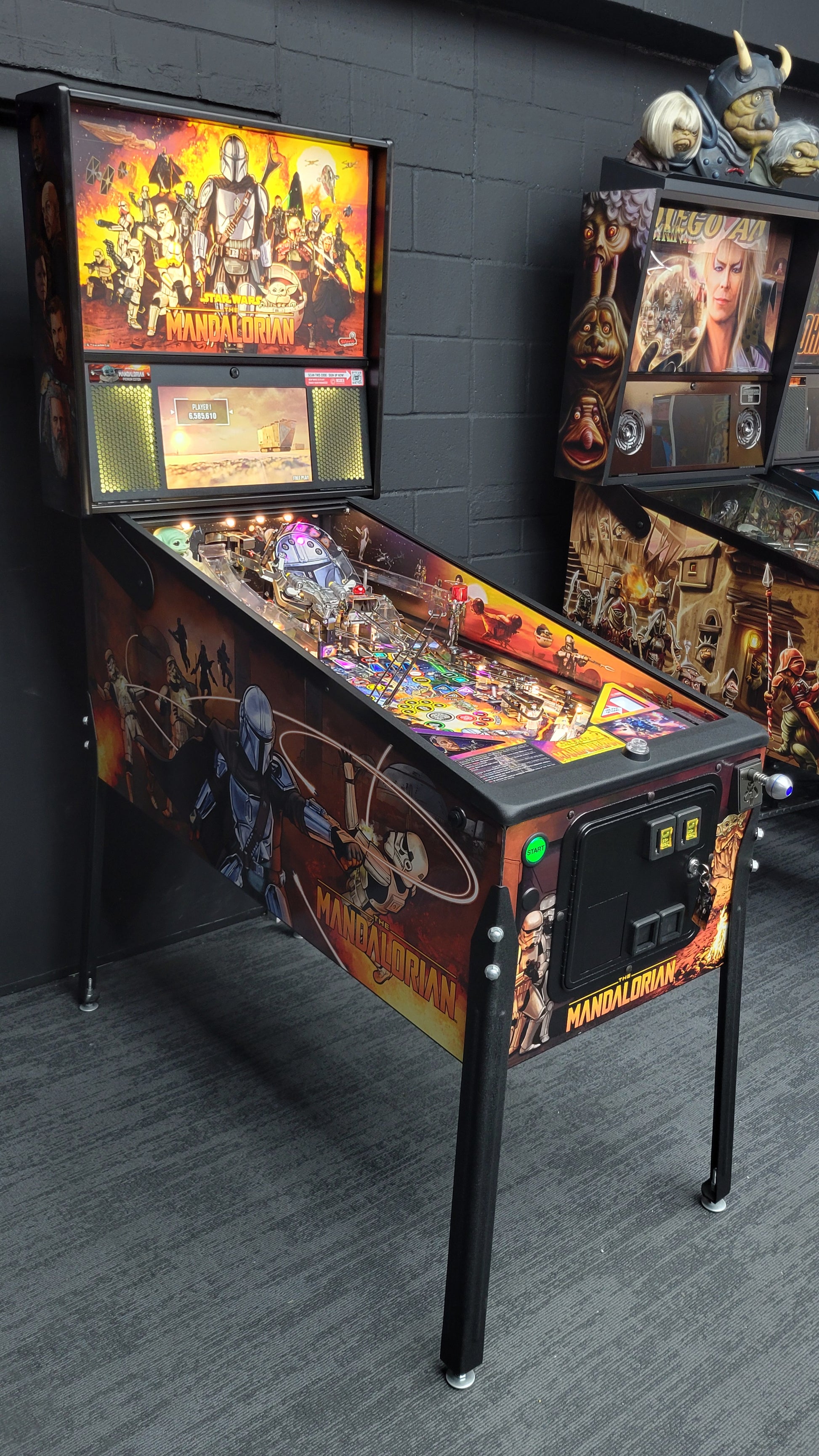 Only 750 limited-edition machines will be available. The limited edition version includes an exclusive full color mirrored backglass inspired by Beskar armor, iconic custom cabinet artwork, custom high gloss powder-coated pinball armor, a custom designer autographed bottom arch, exclusive inside art blades, upgraded audio system, anti-reflection pinball playfield glass, shaker motor, a sequentially numbered plaque, and Certifcate of Authenticity.