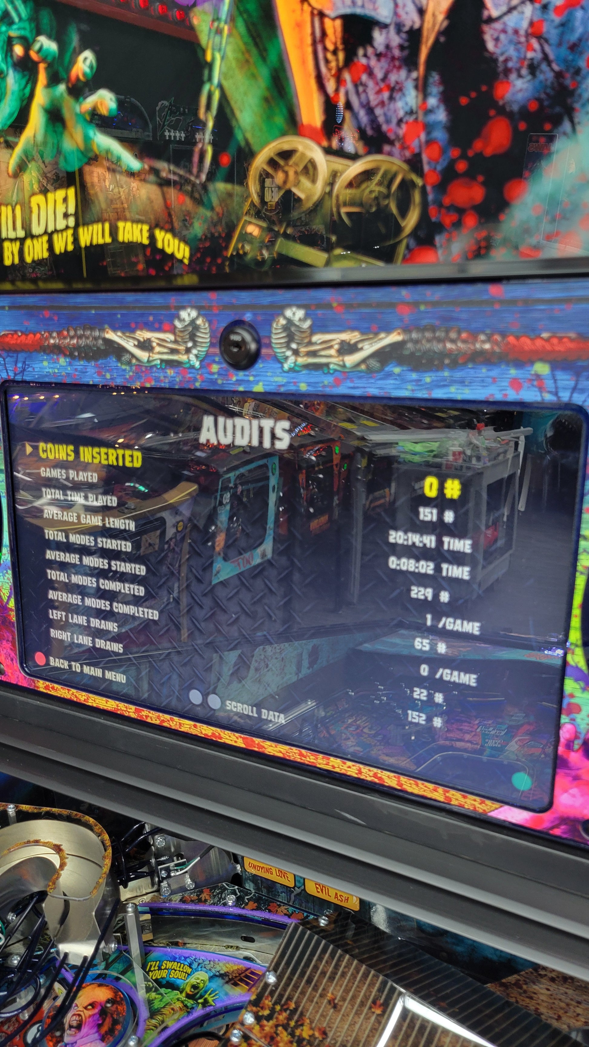 Spooky Evil Dead Pinball with Topper and Butter Cabinet. Only 151 plays.