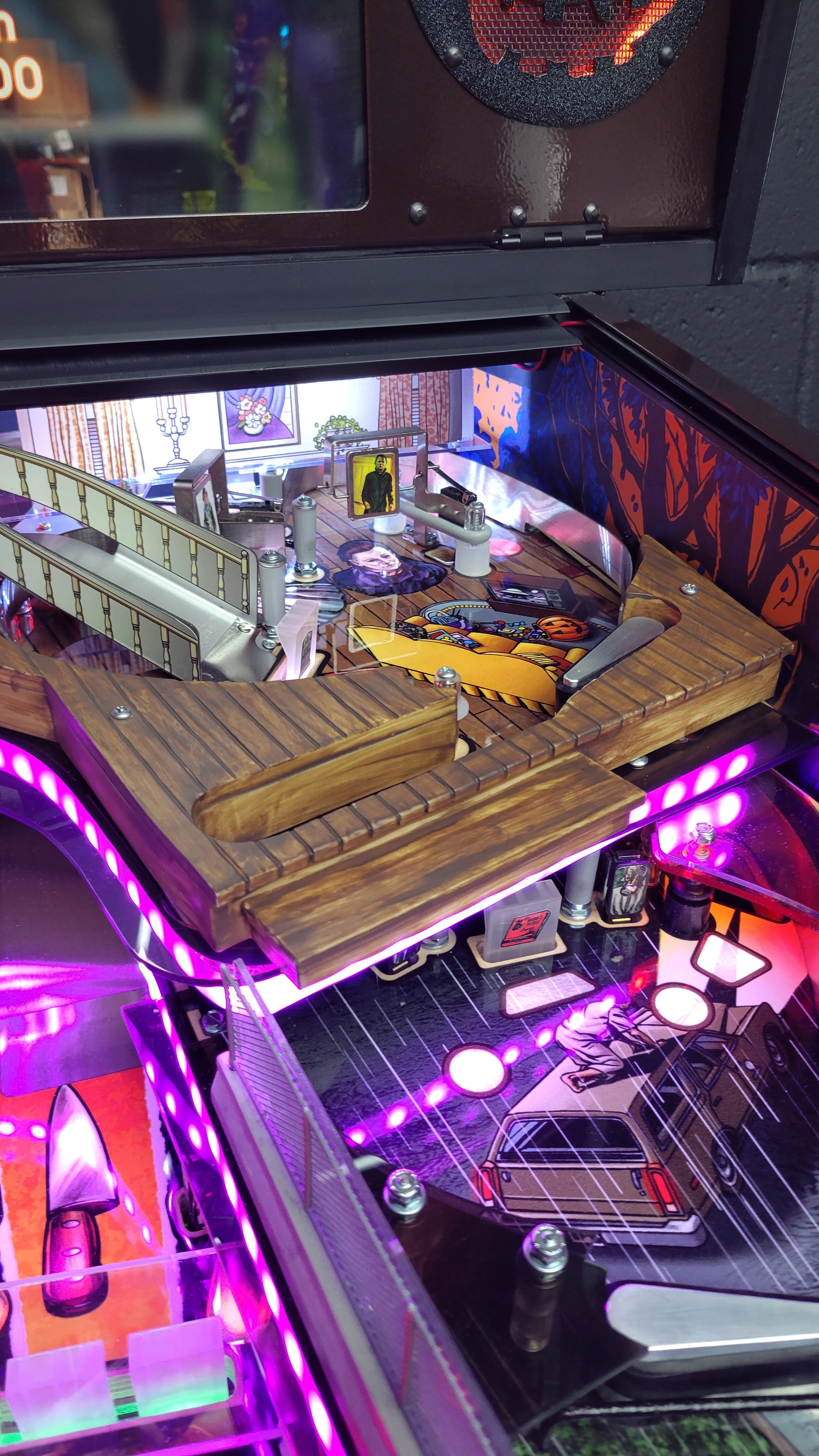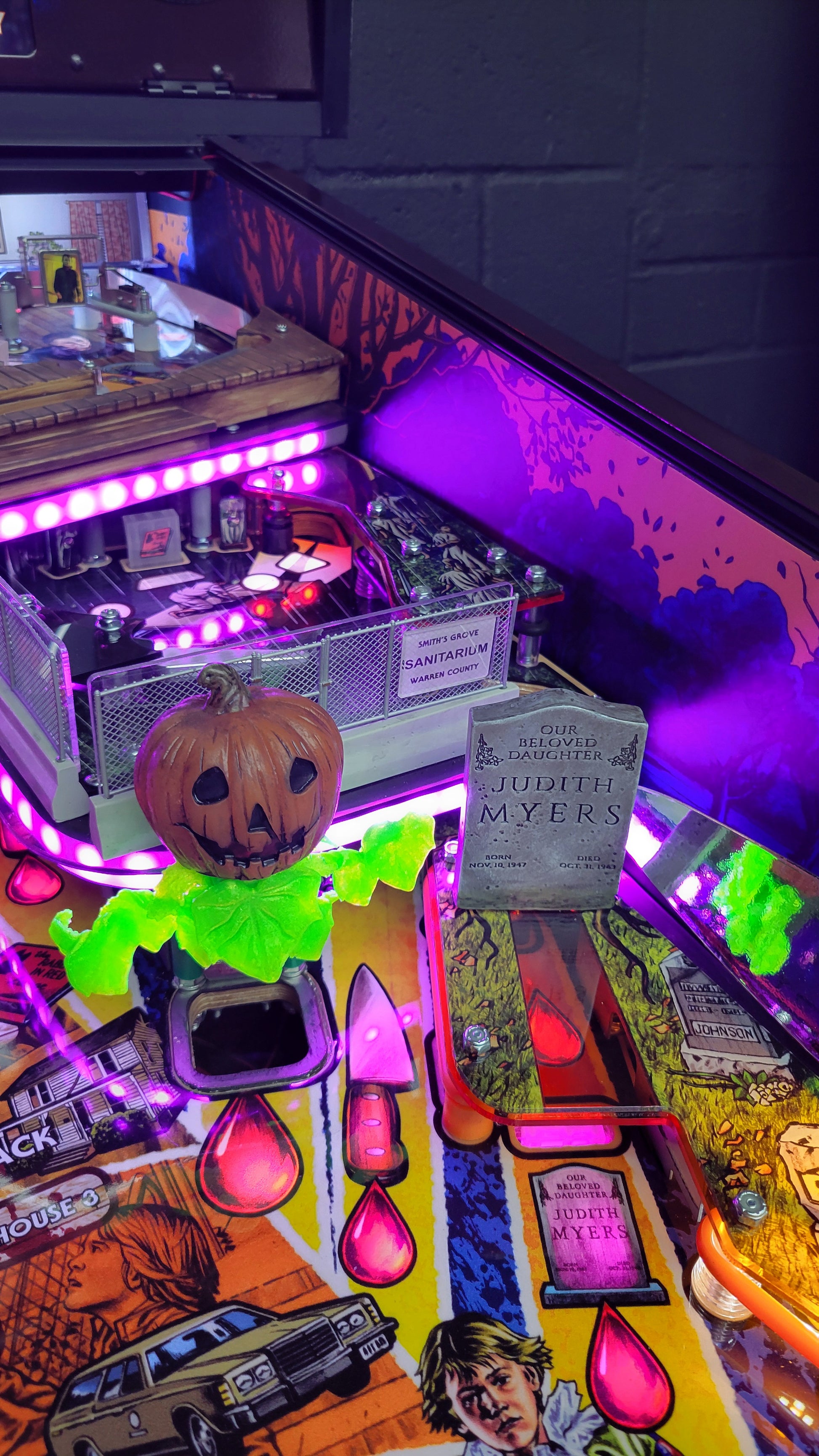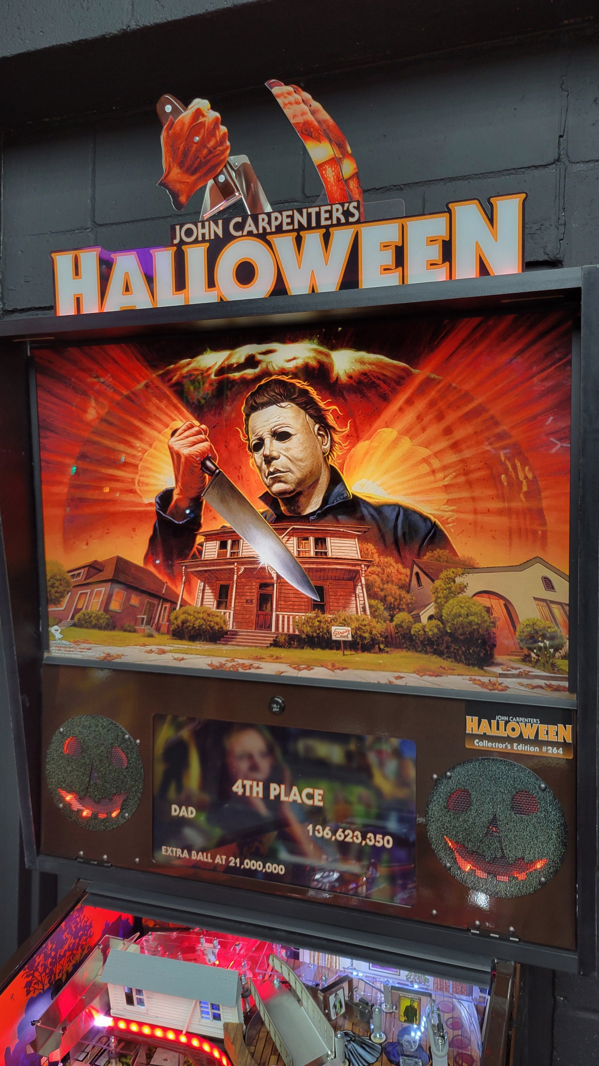 Game includes butter cabinet, custom powder coating on armor, apron, coin door, and speaker panel. Another rare mod added is the house with a mini lcd with Dr. Loomis and Michael Myers walking around in the room, and with many more mods added!