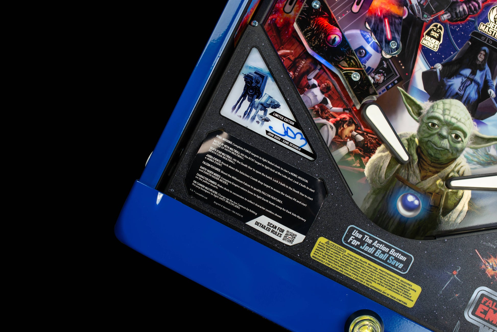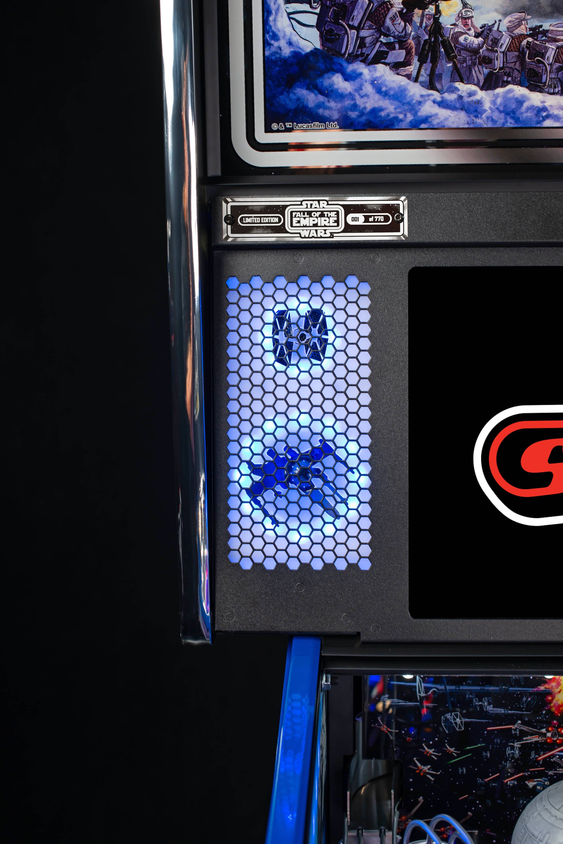 To honor the original release of Star Wars in 1977, the Limited Edition model will be limited to 770 games in the initial launch territories. This highly collectible model includes the Expression Lighting System™ and Speaker Expression Lighting System with Star Wars-themed game effects, a full-color mirrored backglass, full-color high-definition cabinet decals, exclusive custom Star Wars: Fall of the Empire pinball armor, a custom designer-autographed bottom arch, upgraded audio system, anti-reflection pinball playfield glass, shaker motor, a sequentially numbered plaque, a signed Certificate of Authenticity, and a digital Insider Connected LE owner’s badge on registration.