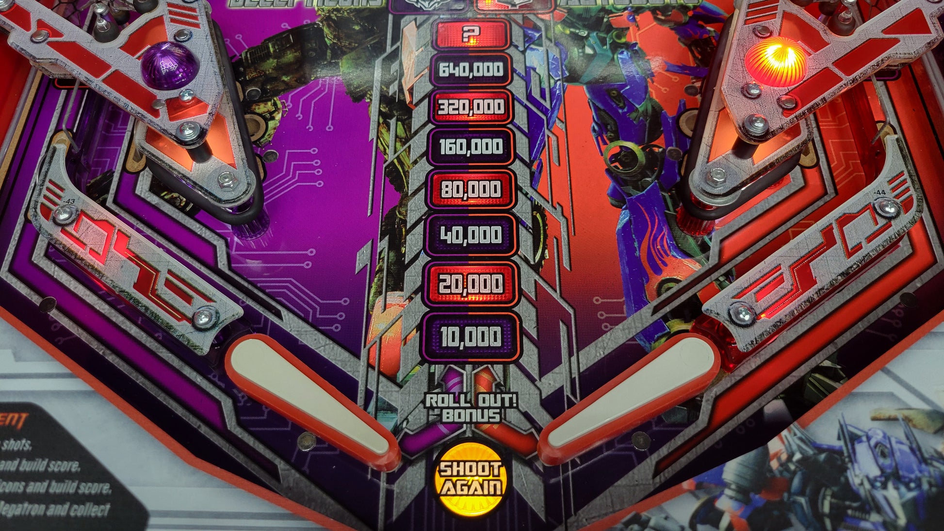 The game is working and a blast to play, with all led lights, a spinner, drop targets, multiball and the spinning Allspark mech.