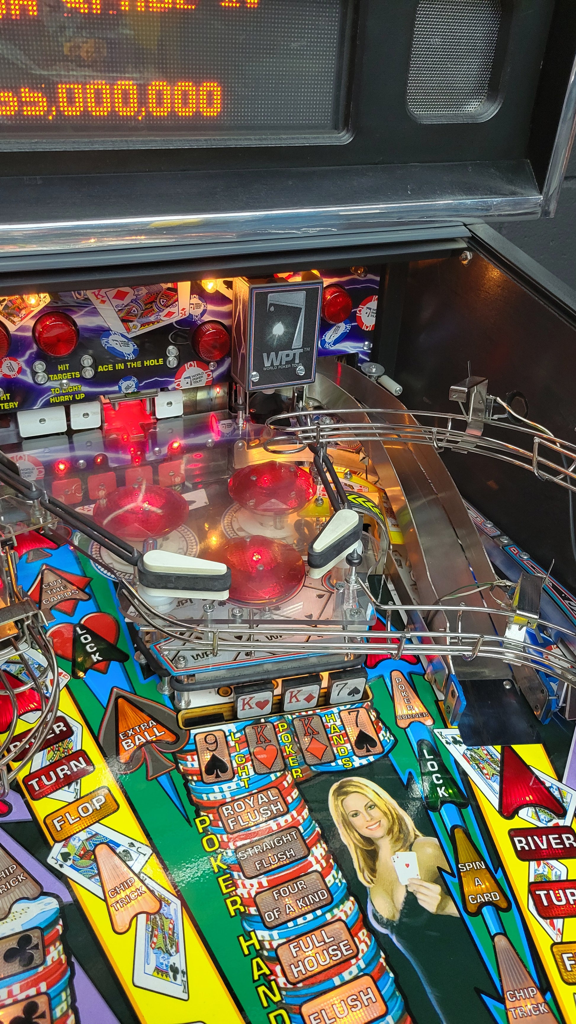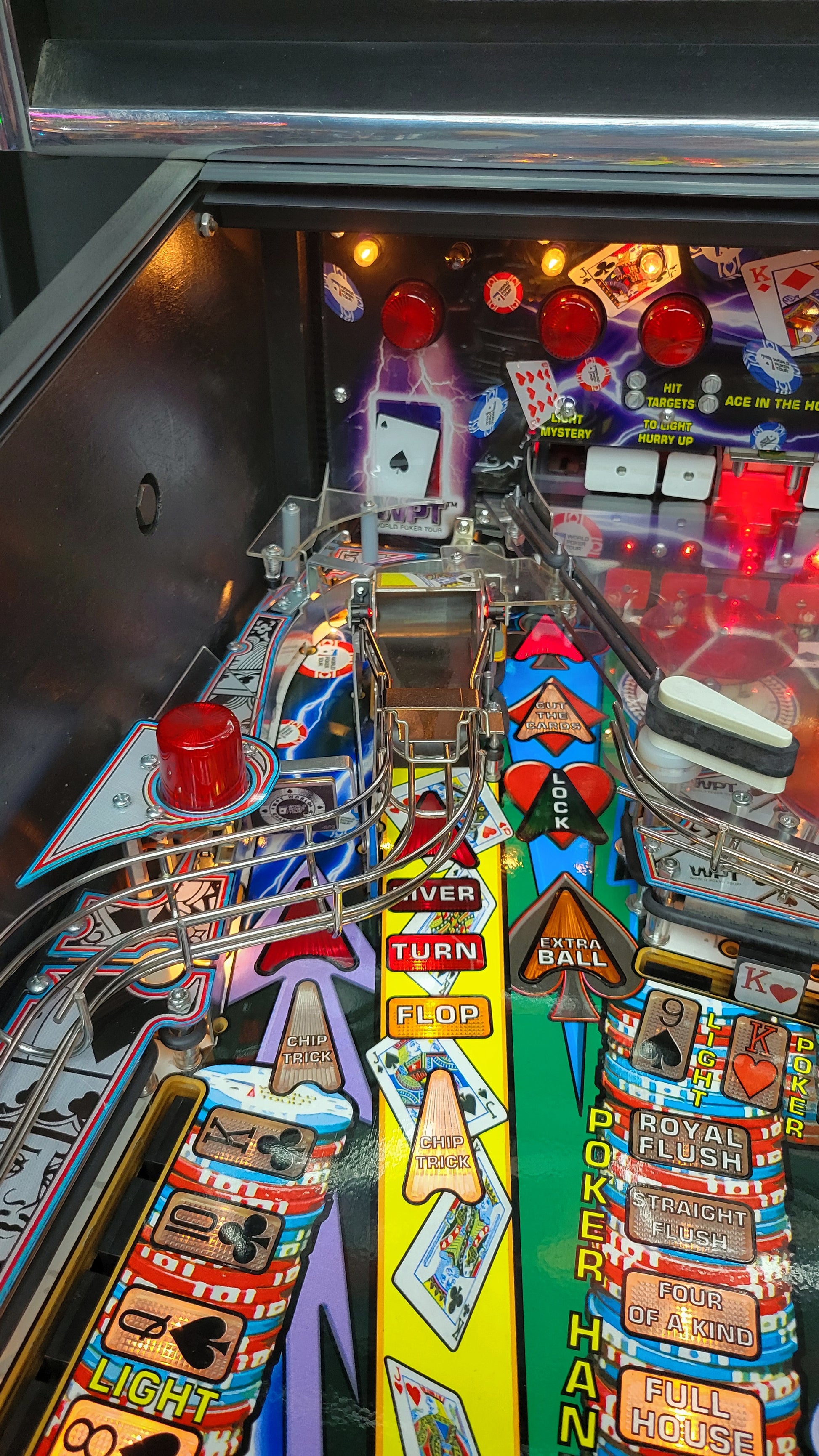 Game in overall great condition. Playfield looks amazing, super clean with everything working, including all the drop targets. Cabinet also in overall nice condition with some minor blemishes here and there.