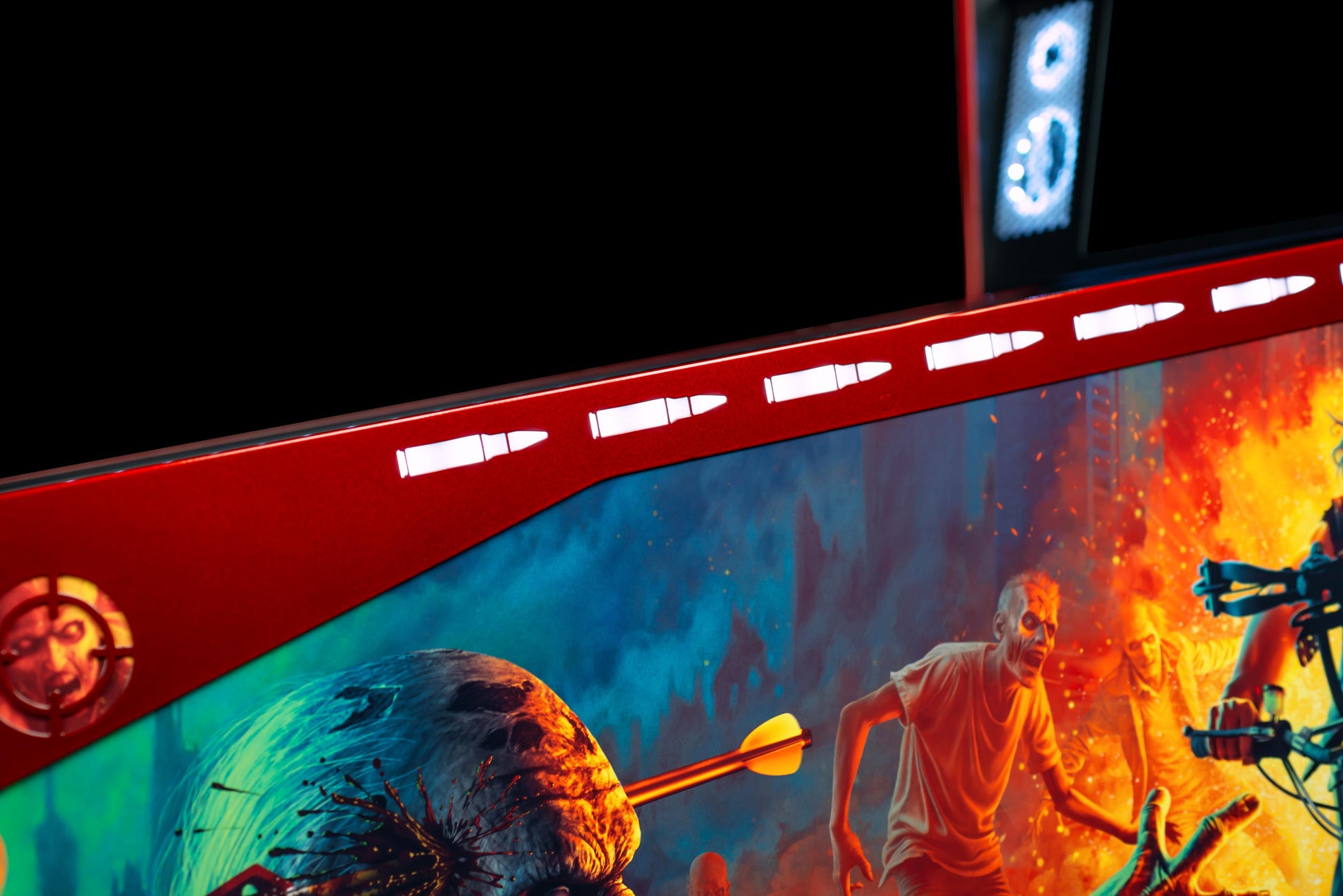 The Walking Dead Remastered features Stern’s next-generation SPIKE 3 technology platform, which includes a larger 18.5” full HD display with true color depth, along with a more powerful processor, and a new high fidelity immersive audio system. Players will get to experience completely overhauled 3D-rendered graphics and custom animations that pay homage to the dot matrix display from the original pinball machine. SPIKE 3 electronics also feature more efficient power handling, improved Wi-Fi support, and wireless headphone capabilities. This release will also feature an updated cabinet lighting customization system designed to allow for internal and external expression lighting on all versions of the game.